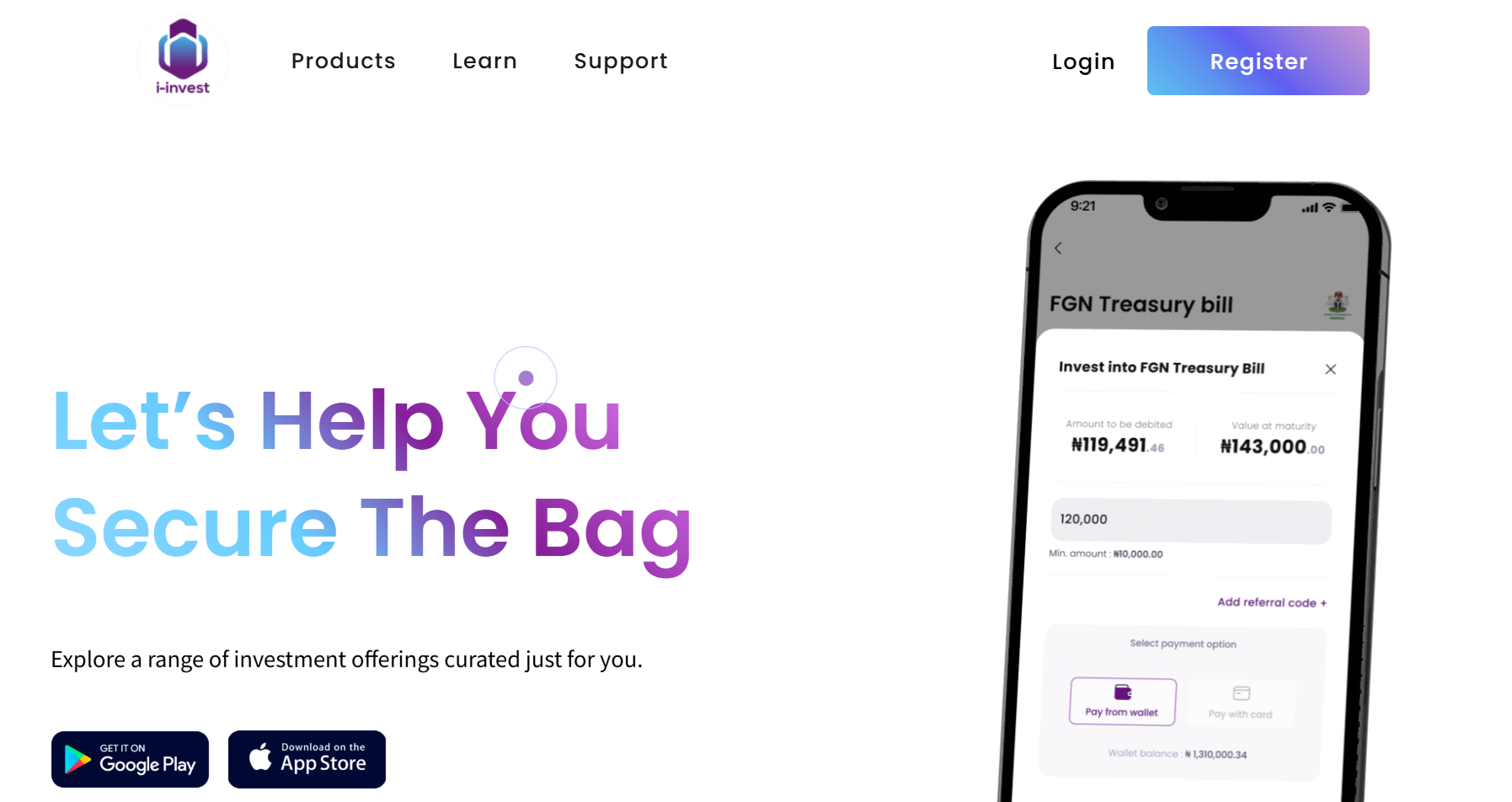 i-invest is Nigeria’s foremost digital platform for Treasury Bills, and now the preferred financial services marketplace in Africa that gives you access to financial products from various financial service providers within a safe & secure platform. No paperwork, no bank queues, no broker required.